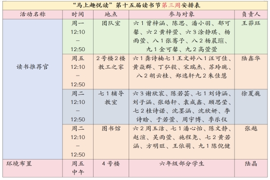 Ø 值周班:八1 Ø 六、七年级周三无作业日,八、九年级周五无作业日 |